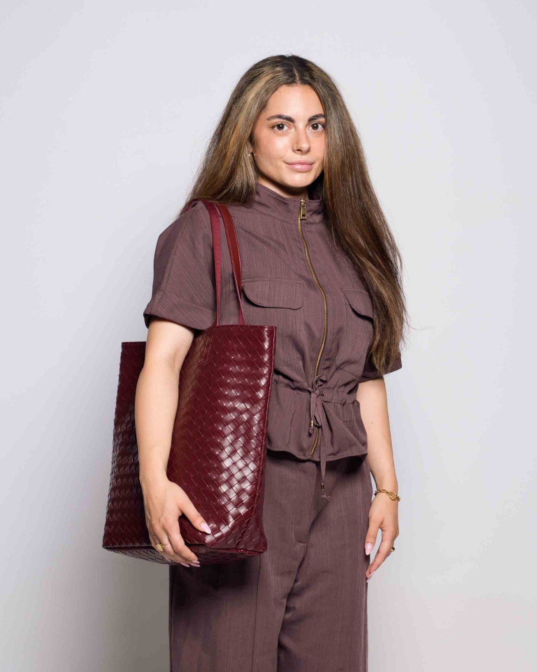 Gefertigt aus weichem, veganem Material, das Struktur bewahrt, vereint sie Nachhaltigkeit mit einem klaren Design. Ihr ruhiger Look lässt sich mühelos kombinieren – mit Jeans und T-Shirt ebenso wie mit Blazer oder Kleid. Für alle, die Alltag und Ästhetik verbinden – mit Sinn für das Schöne im Schlichten.