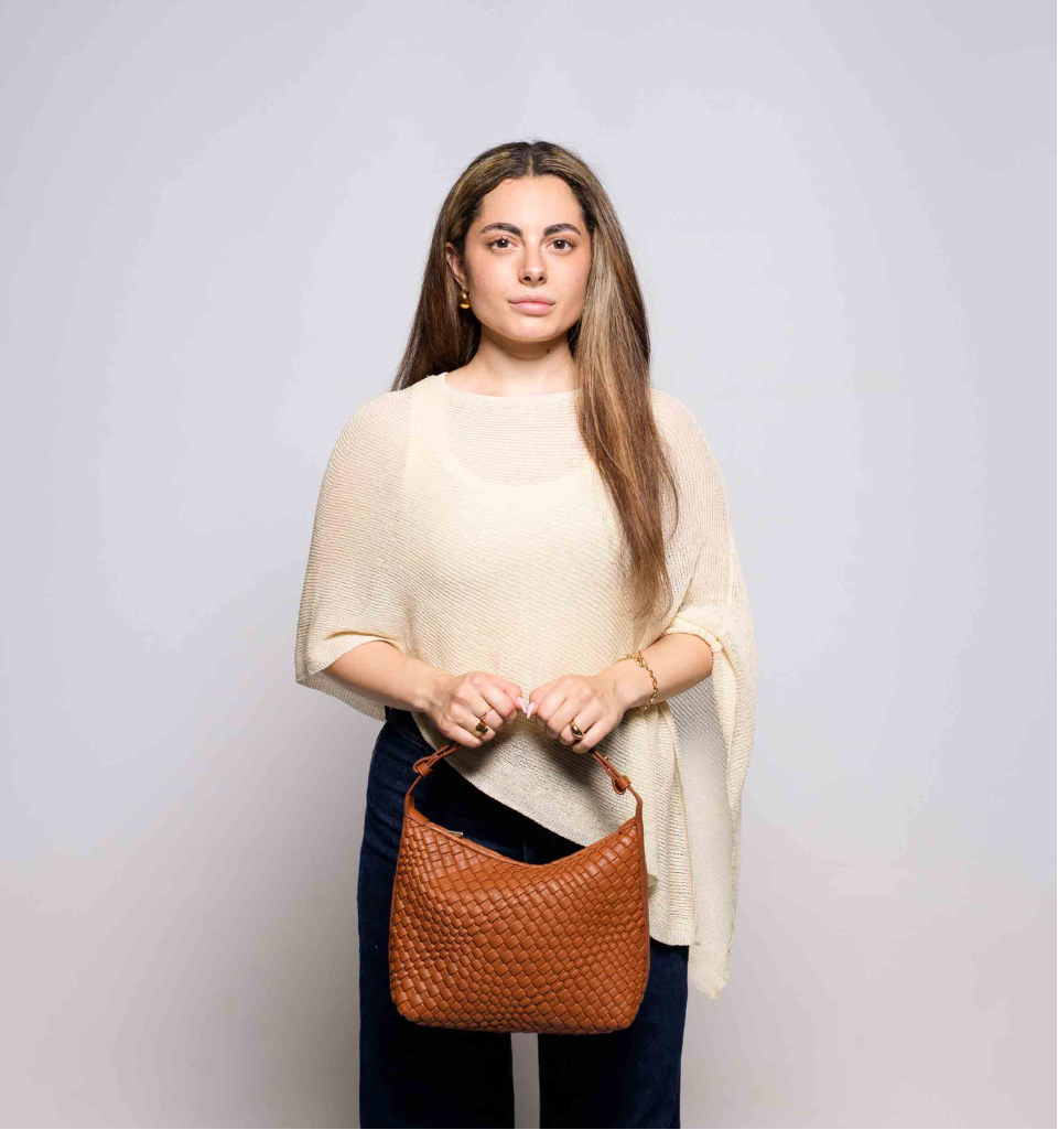 Gefertigt aus weichem, veganem Material, das Struktur bewahrt, vereint sie Nachhaltigkeit mit einem klaren Design. Ihr ruhiger Look lässt sich mühelos kombinieren – mit Jeans und T-Shirt ebenso wie mit Blazer oder Kleid. Für alle, die Alltag und Ästhetik verbinden – mit Sinn für das Schöne im Schlichten.